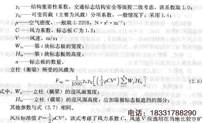 交通標志桿設(shè)置高度大于10m時,如位于某些立交區(qū)的落地式標志,應考慮風壓高度變化系數(shù)和風振系數(shù),具體計算可參照《建筑結(jié)構(gòu)荷載規(guī)范》(GBS9--S7)進行,選用的風速值V不得小于40m/S。