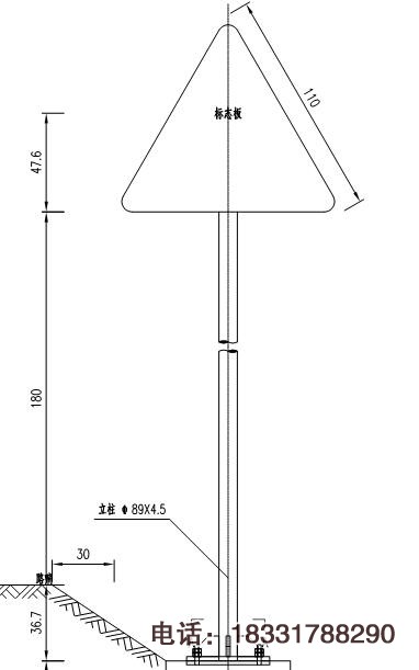 百分之八十以上的單柱式交通標(biāo)志都是采用鋼管89mm制作,采用熱侵鍍鋅處理,常規(guī)尺寸立柱直徑φ89mm*厚度4.5mm*高度3000mm,基礎(chǔ)法蘭盤400mm*400mm*10mm,地腳螺栓M20*L=710mm。其他常見尺寸有φ76、114、121、140、152、165、180、194、219等都是單柱式標(biāo)志桿的鋼管直徑,高度則根據(jù)公路規(guī)劃測量高度情況而定。一套標(biāo)志桿是由立柱、底座法蘭盤、基礎(chǔ)法蘭盤、底座加勁肋、地腳螺栓、螺母、標(biāo)志牌、抱箍、滑動(dòng)槽、反光膜等材料組裝而成,基礎(chǔ)挖坑采用混凝土澆筑,一般5-7天則可安裝。