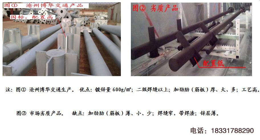 同樣的東西為何報價相差很多,都是熱鍍鋅,都是鋼管加工,為何雙方有很大差價。主要原因在于客戶,客戶含糊的提供標志牌尺寸或者主桿橫臂尺寸后,對細節(jié)類似底座法蘭盤、橫梁法蘭、加筋板等配置無要求,由廠家自主設(shè)定,報價差距就在這了。打個比方來說,客戶就像去4S店買汽車,只說買奧迪2.0T排量,內(nèi)飾沒要求,奧迪內(nèi)飾不同,價格相差10多萬。返回來講,交通標志桿當中最常見的主桿φ273mm,橫臂φ152mm(φ159mm)這兩種尺寸,是高速公路、國道、省道最常見的交通標志結(jié)構(gòu)設(shè)計圖紙。咨詢多家交通標志桿生產(chǎn)廠家,報價出入高達2000多元/套,低者報價3600-4000元,高者報價5000-6000元,區(qū)別在于立柱法蘭盤、底座鋼板、預(yù)埋件、橫梁加筋板等配置上。滄州博華交通公司本著嚴謹?shù)墓ぷ鲬B(tài)度,對每一套交通標志桿都有嚴格的生產(chǎn)要求,無論是從橫梁加勁肋及基礎(chǔ)底座材料上來說,配置都很高。品質(zhì)的不同,價格會不同。便宜沒好貨,好貨不便宜,博華交通標志桿無論從用料、焊接、鍍鋅等方面下足了本錢,它的成本就高,它的銷售價格自然就高。文章未經(jīng)許可,不得轉(zhuǎn)載,違者必究!