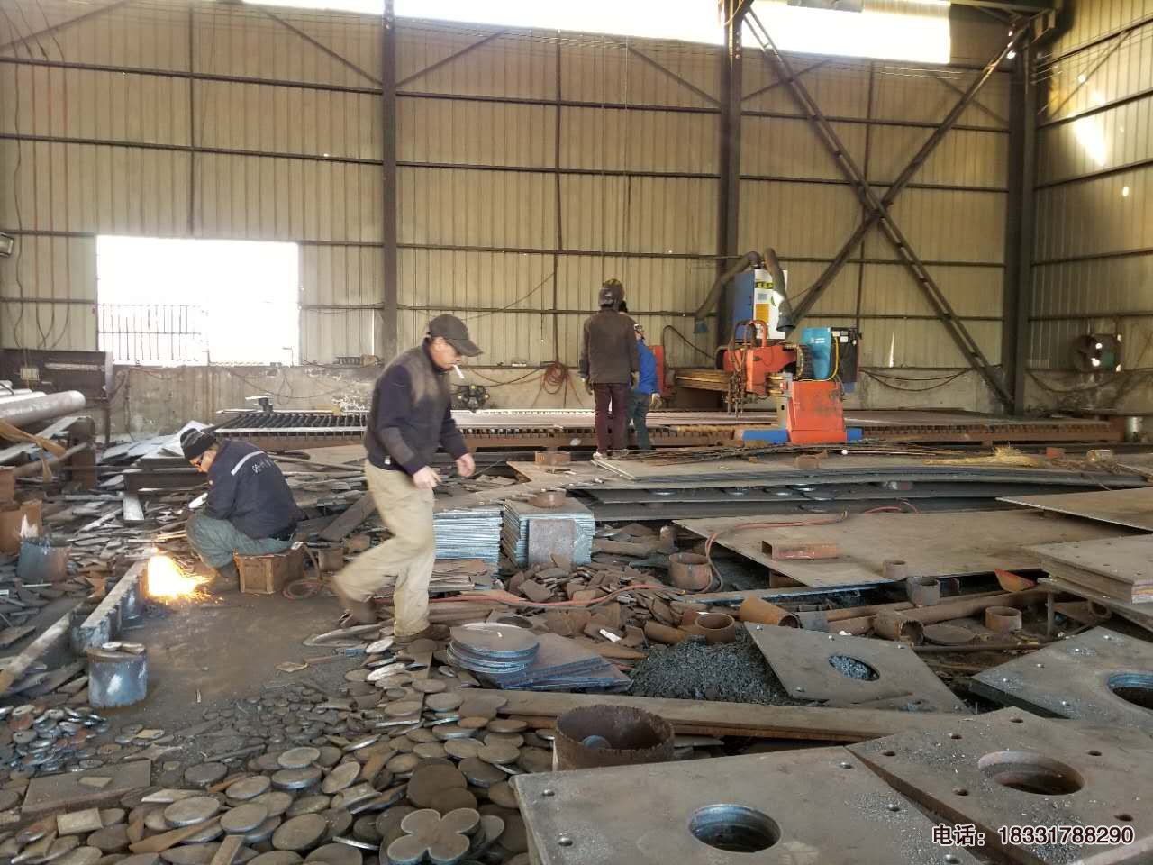 河北標(biāo)志桿廠家擁有龍門式雙火焰數(shù)控切割機(jī)2臺,雙等離子數(shù)控切割設(shè)備1臺,小型等離子數(shù)控切割機(jī)2臺,都是標(biāo)志桿法蘭盤及加勁肋(筋板)下料的必用設(shè)備,先進(jìn)電腦數(shù)控操作,尺寸誤差控制在+3毫米之內(nèi),相比人工切割無論在技術(shù)含量和效率上都非常的好。